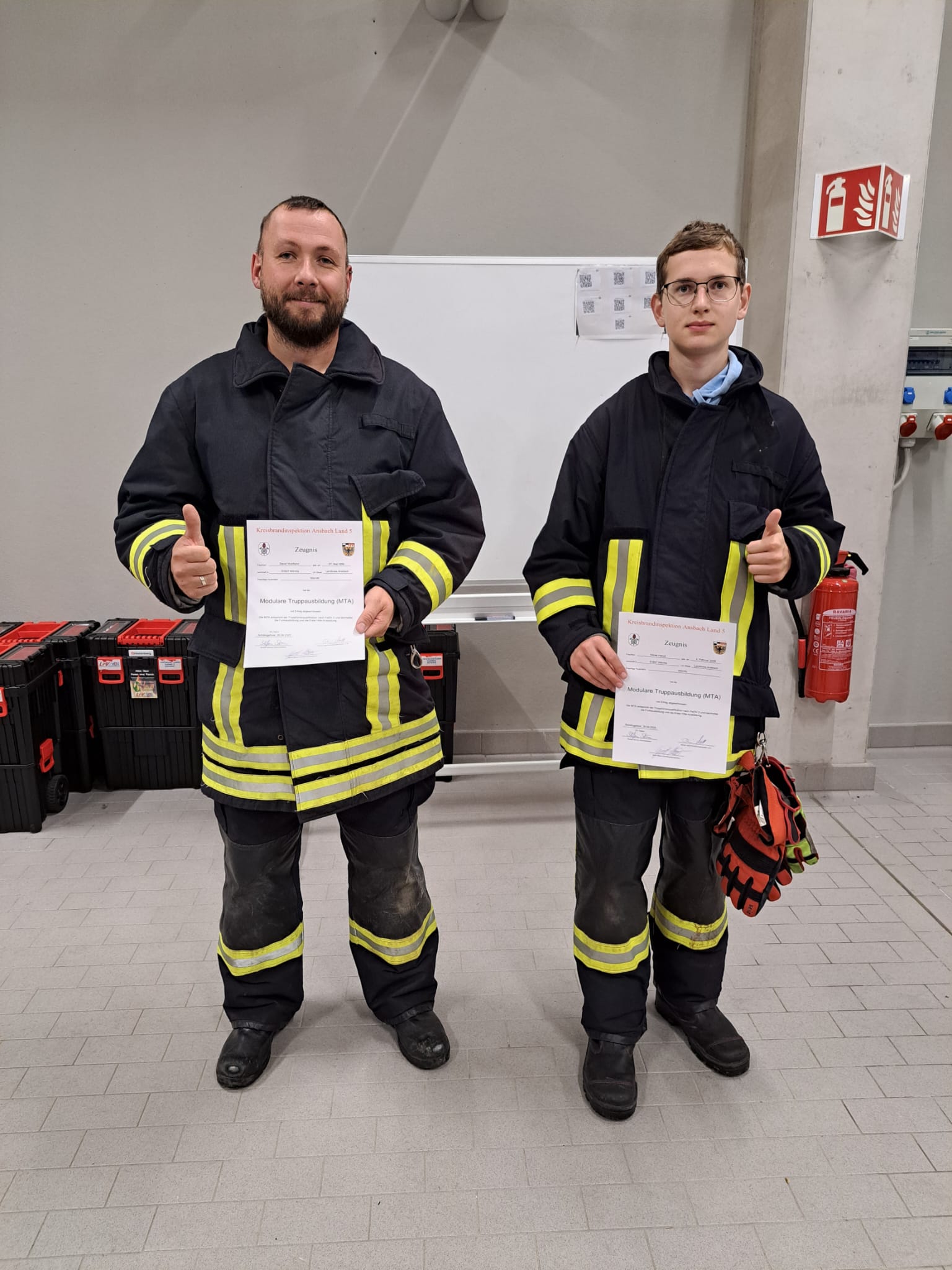 Am vergangenen Freitag fand in Schillingsfürst gemeinsam mit den Feuerwehren Schillingsfürst, Schorndorf und Wörnitz die Abnahme der Modularen Truppausbildung statt. Auch aus unserer Feuerwehr nahmen zwei Prüflinge teil. Die Prüfung bestand aus einem schriftlichen Teil, sowie Einzel- und Truppaufgaben.